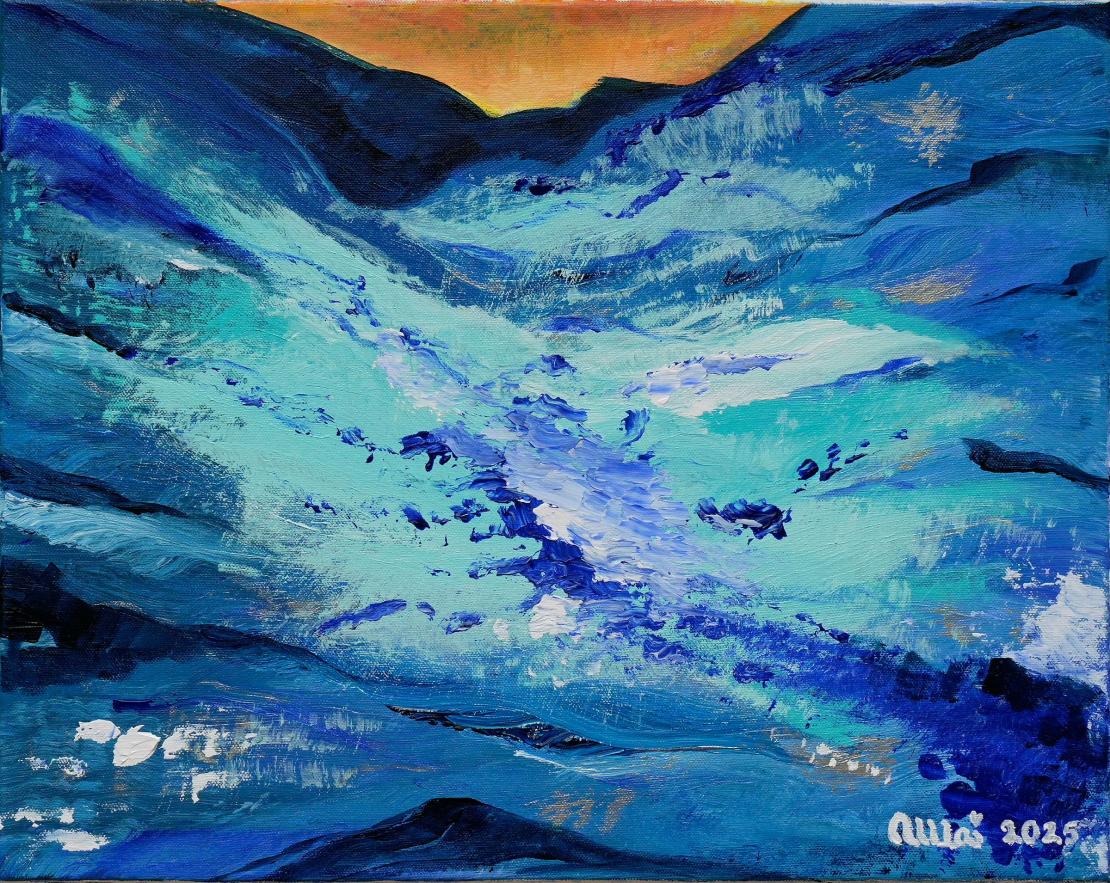 16"20"41cm51cmAcrylic on canvasNordic nostalgia. Serene sunrise